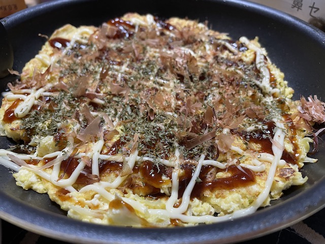 오코노미야키 소스랑 가츠오부시 갈아놓은거 있길래 다 뿌림