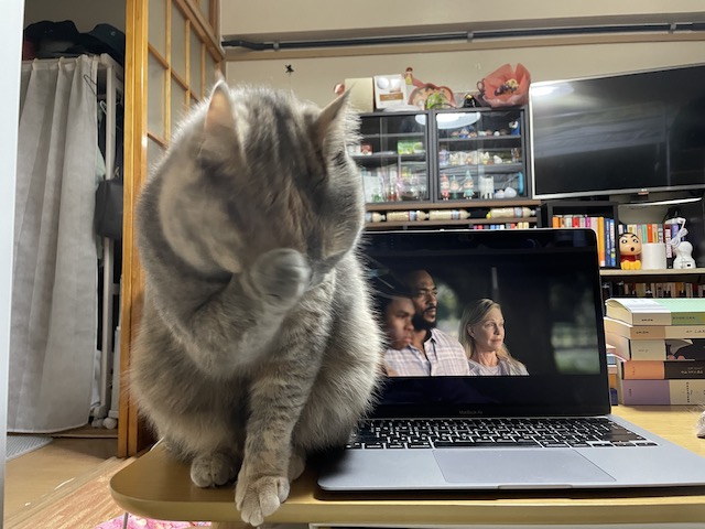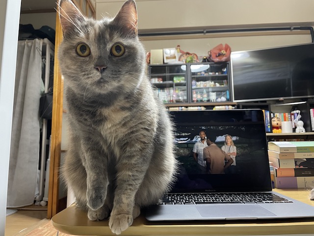 무릎으로 와서 누웠다가 같이 시청중