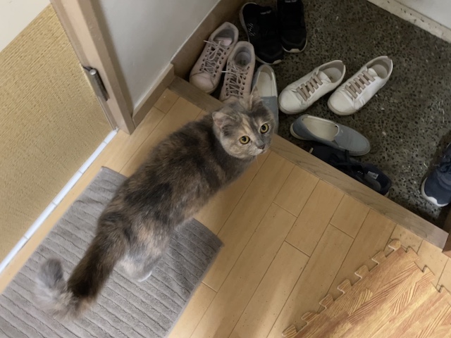 살짝은 경계 모드지만 꼬리가 호기심 모드인 것을 알려줍니다 ㅎㅎㅎ