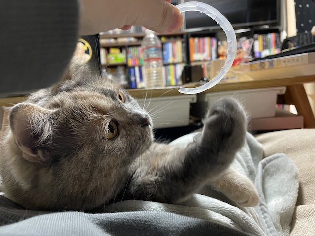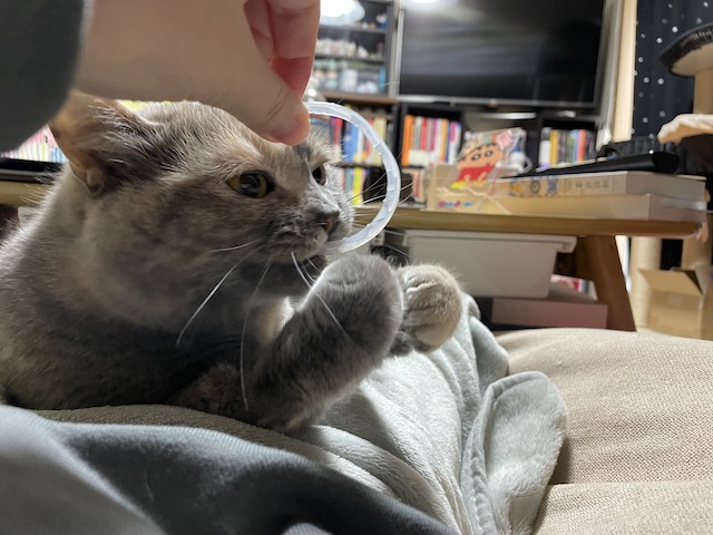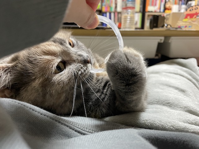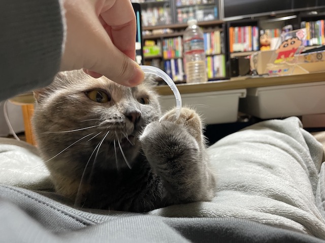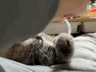 잠이 들랑 말랑 하길래 놀아주려고 꼼지락 대는 집사 눈치챔. 너 뭐해?