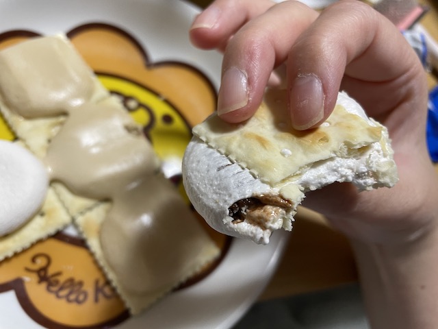 요 흰색 아이는 세븐일레븐에서 산 쵸코 들은 마쉬멜로