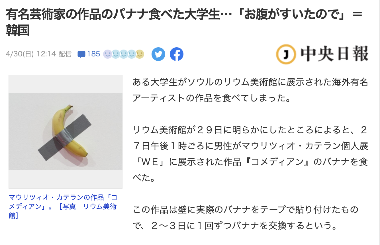 이번에는 한국 리움 미술관에 전시중인 바나나를 드셨나봄.