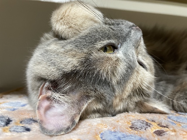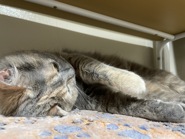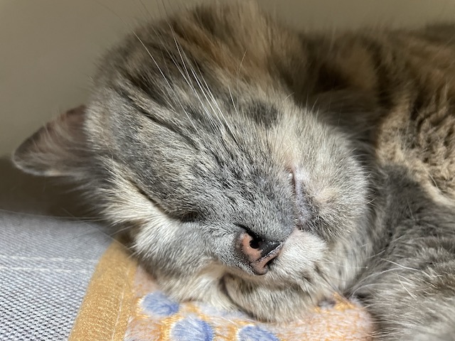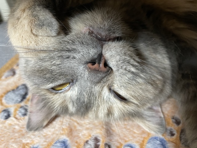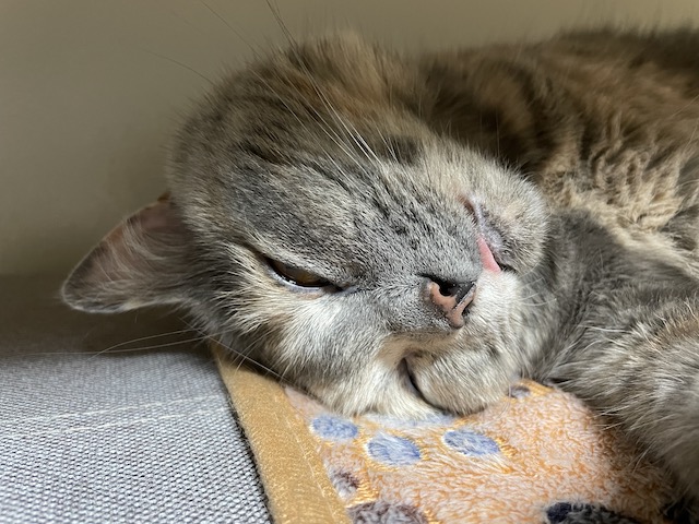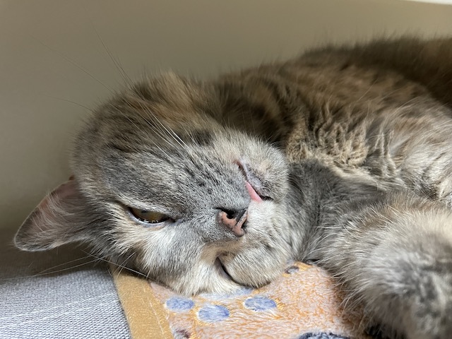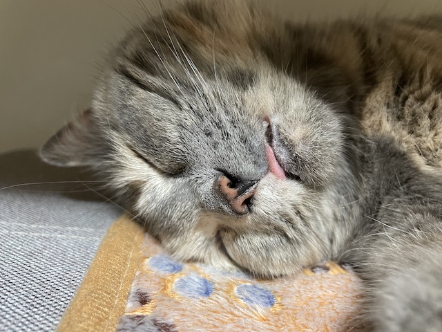 뒤돌아 봤다가 혀 내밀고 자는 율무를 발견해 버린 집사