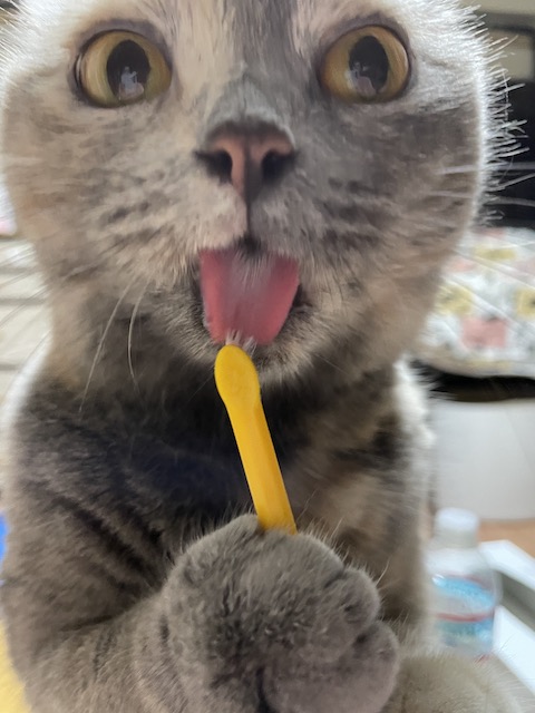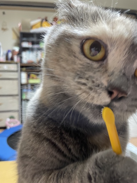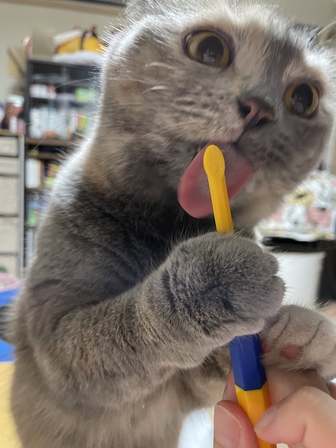 집사는 치약을 간식으로 쓰고 있지만 행복합니다.