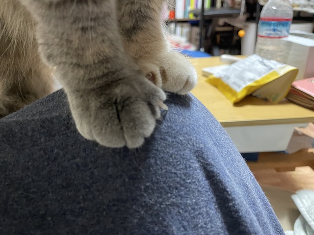 캬악- 집사 무릎에 빵꾸나유