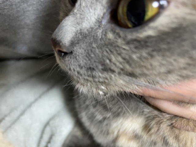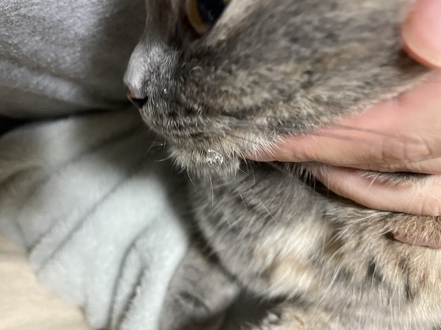 살짝 턱을 눌렀을 뿐인데 침이 쭈욱 나왔습니다.