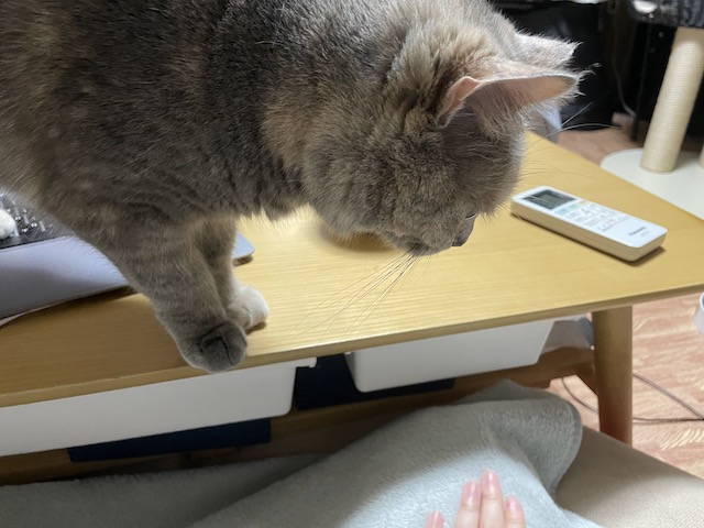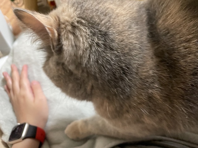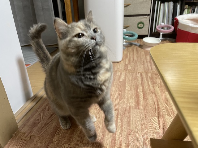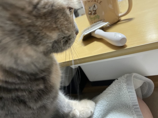집사는 또 다리를 두둥기며 무릎에 오라고 애걸복걸 중