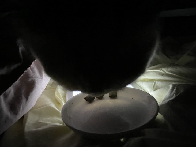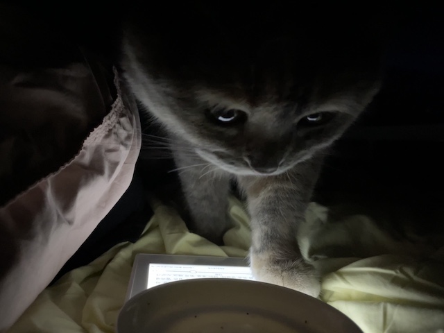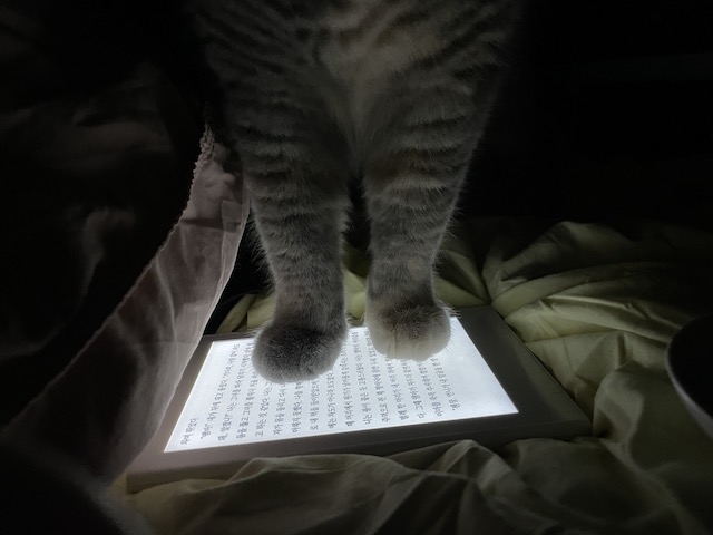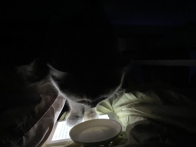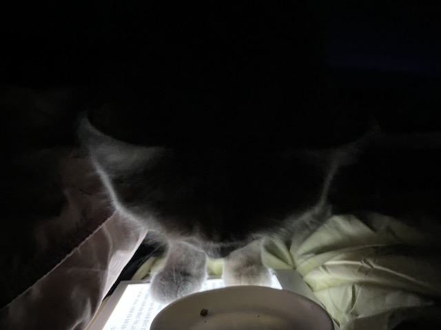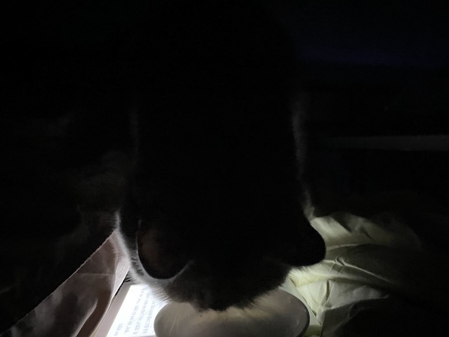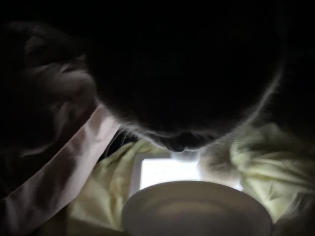 이불 리더기를 조명삼아 간식 먹으러 온 율무를 보다가 찍히기 시작한 것 :)
