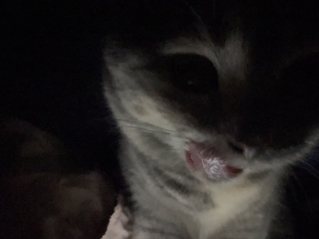간식 맛을 살짝 보고 츄릅 - 혀가 또 자동으로 나오는 중.