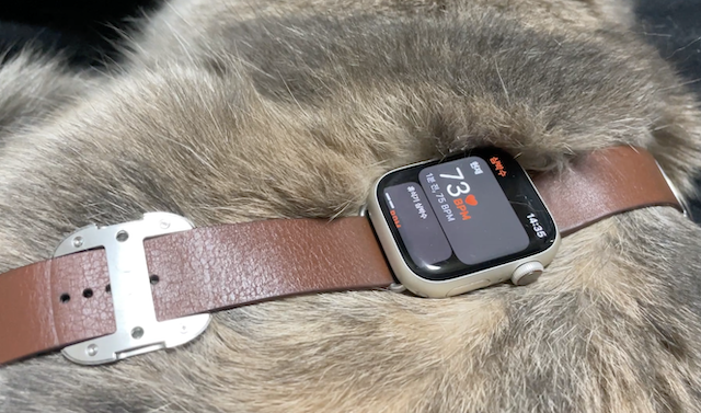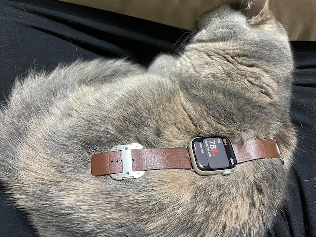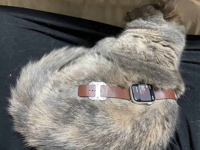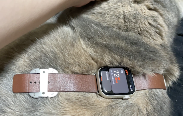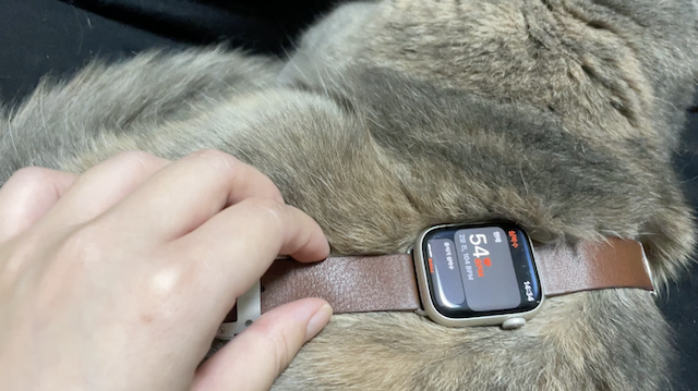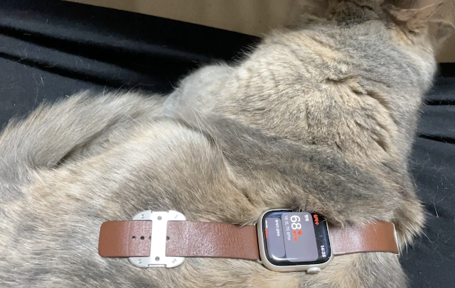 마침 무릎에서 자고 있길래 워치를 올려봤다.