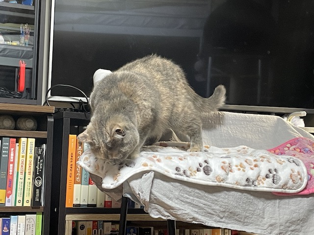 이제서야 키보드 위에 올려놓은 담뇨 발견.