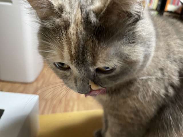 조금씩 줄어드는 율무 얼굴위의 츄르