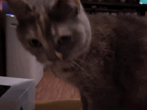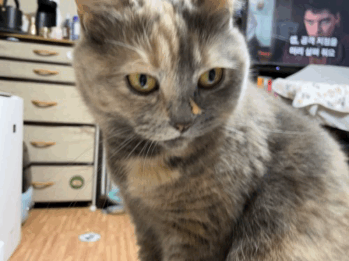 결국 시네마 타임 만끽중인 집사의 시선을 강탈하여 츄르 먹기 성공한 율무