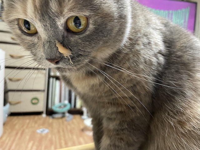 신나게 먹다가 그만 제대로 츄르가 묻어버림