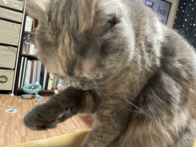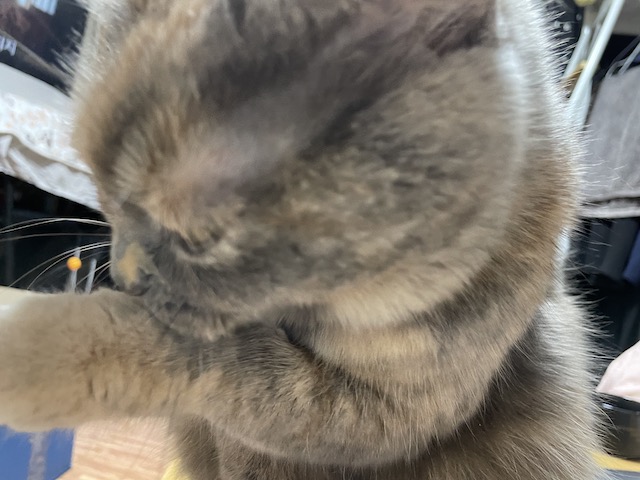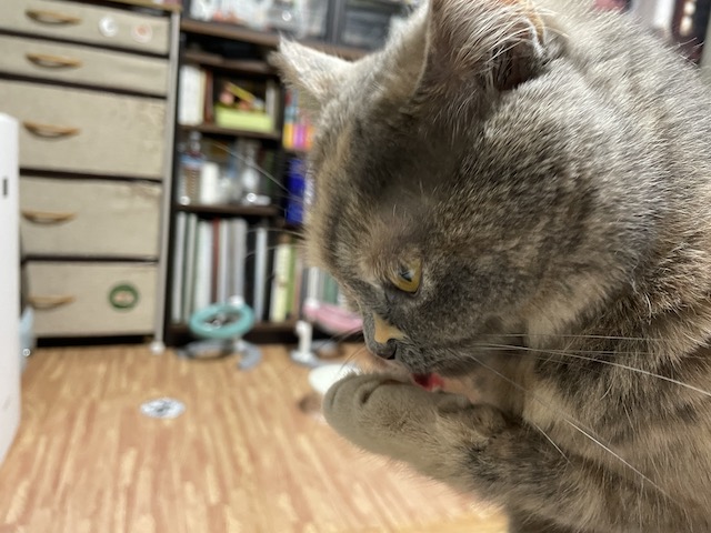 몸에서 나는 츄르의 냄새를 없애기 위해 필사적