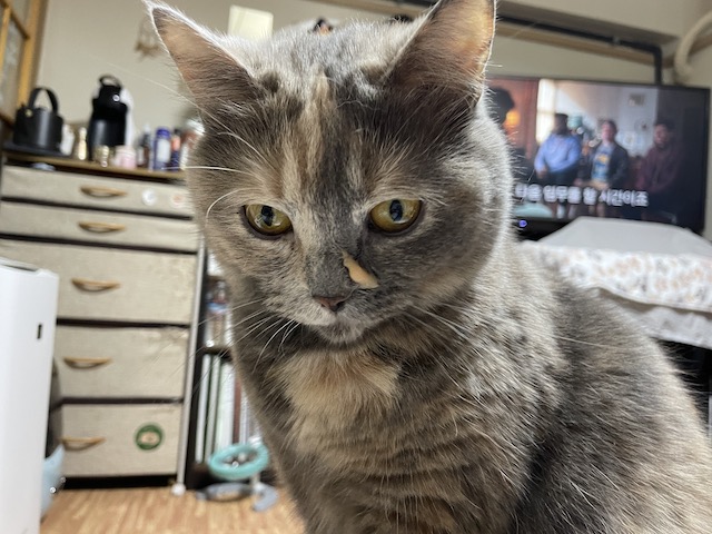 코 옆에 왕 크게 뭍은 츄르