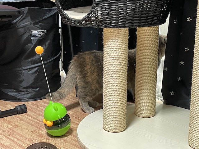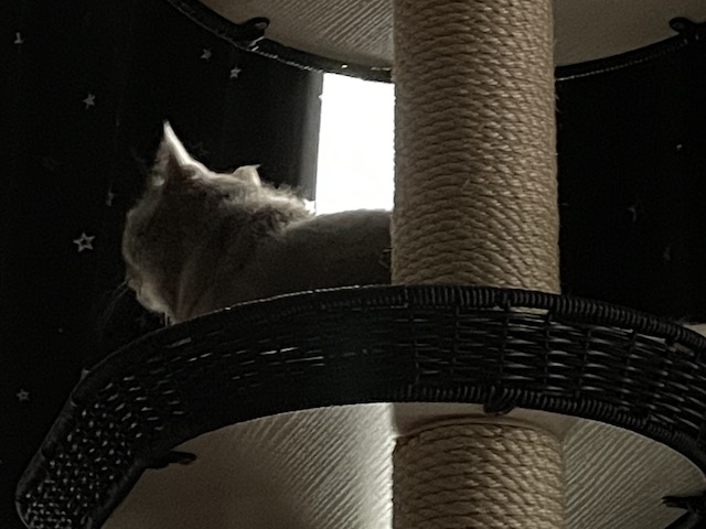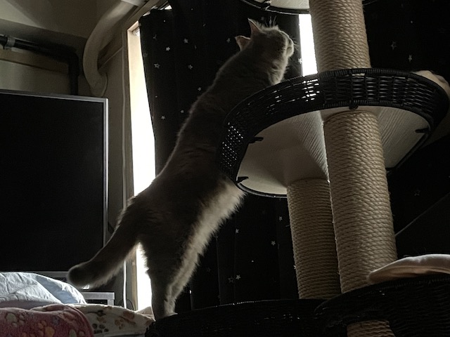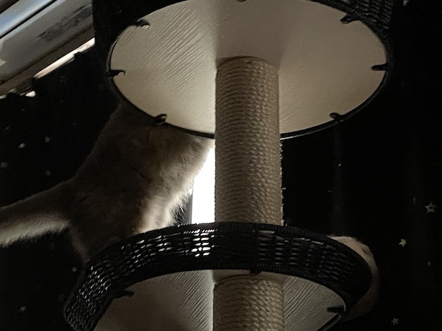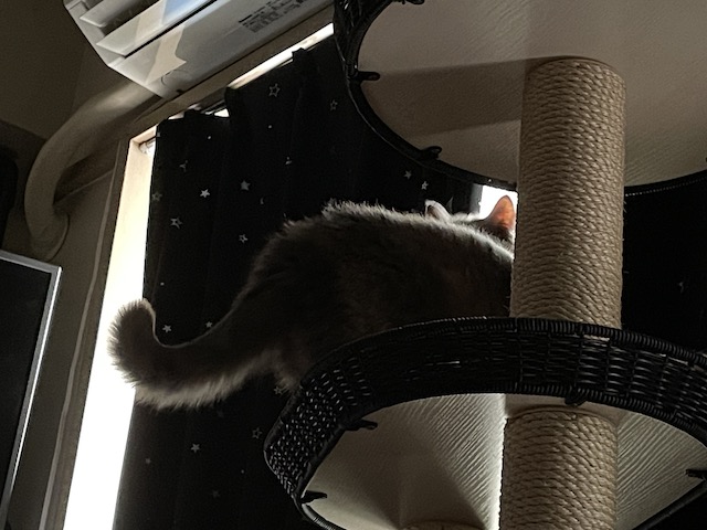 보통은 올라가기만 하는 캣타워에서 몸을 쭈욱-