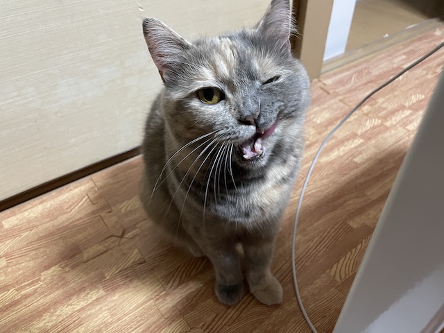 은 아니고 그루밍하다가 혀 내밀고 있어서 찍을라 했는데