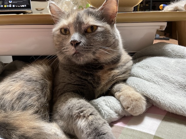 음식은 못먹으니 대신(?) 집사 무릎에 착석한 율무