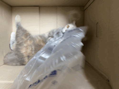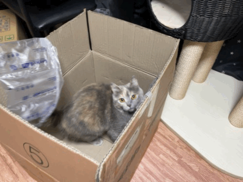 대신 율무가 좋아하는 비닐을 위에 입구 부분에 테이브로 붙여 줬더니 난리남 ㅋㅋ