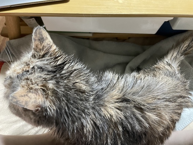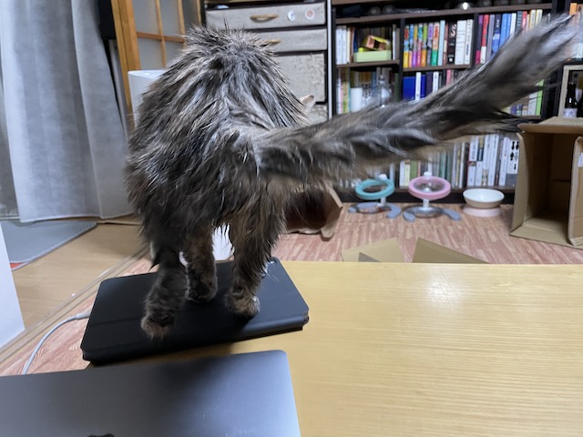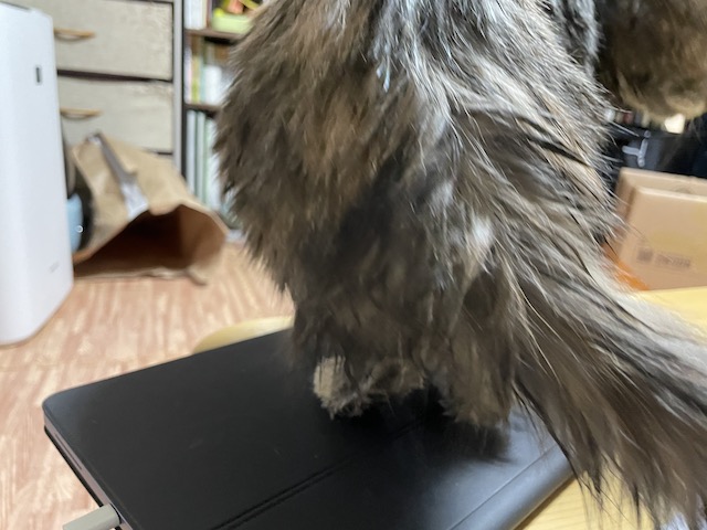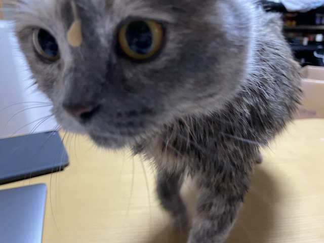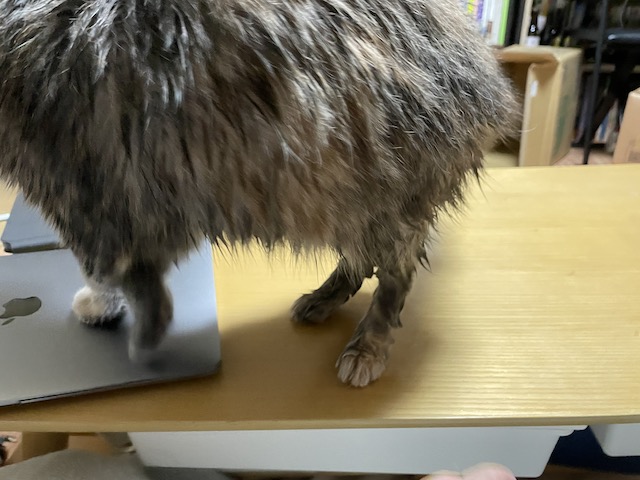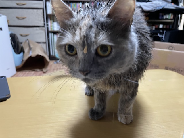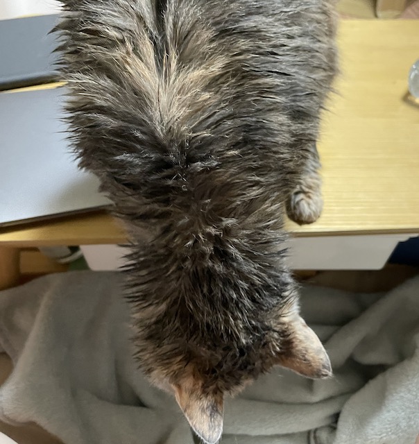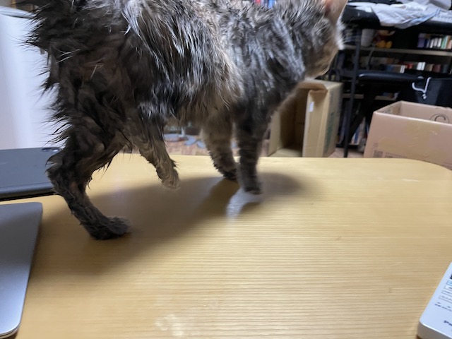집사가 또 드라이기 들이밀어서 테이블 위로 피신
