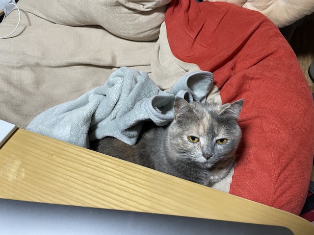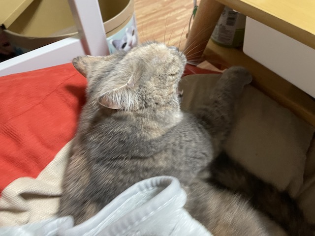 가끔 이렇게 무릎 위가 아니라 빈 공간에 앉기도 해서