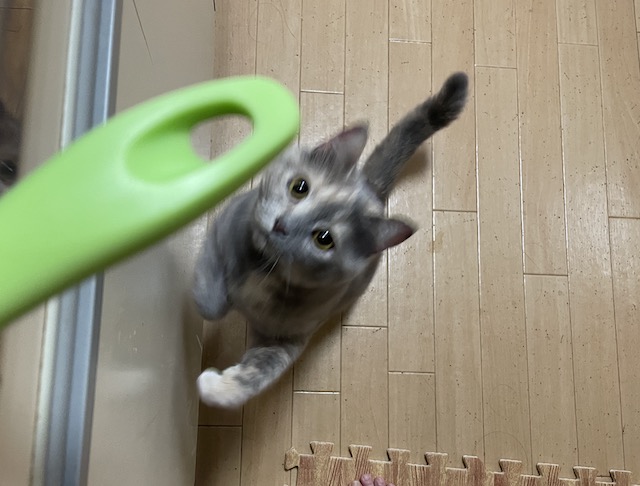 쥐돌이 물고오는것마냥 물고와서 당황한 집사는 셔터찬스를 놓쳤습니다.