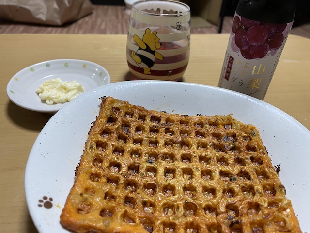 와플팬에 하나 굽고 남은건 부침개처럼 구움.