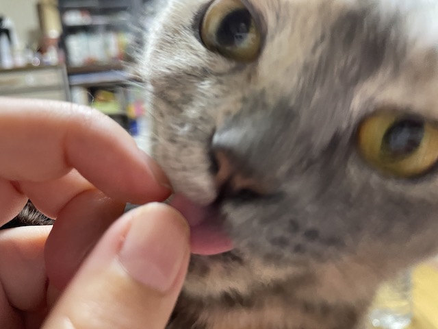 집사 손 귀엽게 잡고 혀도 내밀어서 달달한 것 같지만