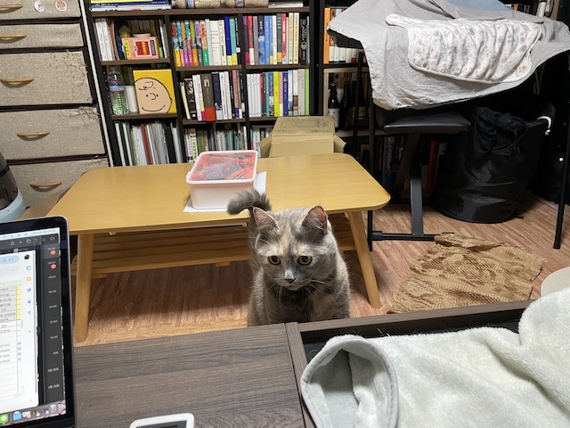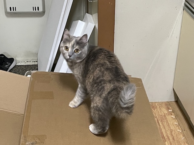 뭔가 큰거 들고 낑낑 거리는 집사 근처에서 알짱거리기