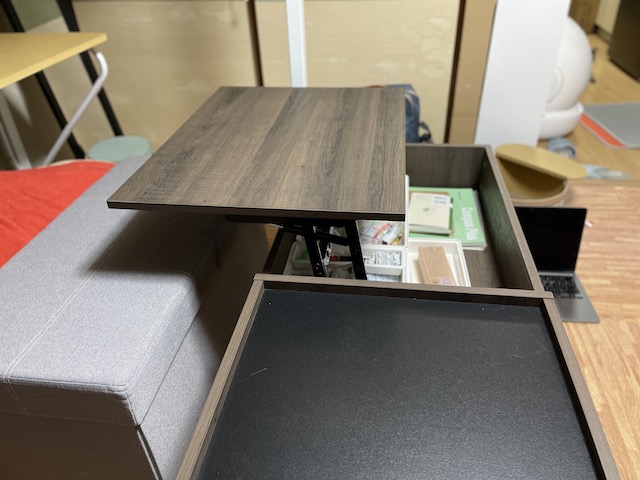 다시 소파 생활을 할까 하면서 높이 조절이 되는 테이블을 사 보았습니다.