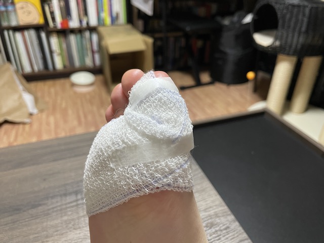 요런 오바스러운 붕대 감기를 해 주었습니다.