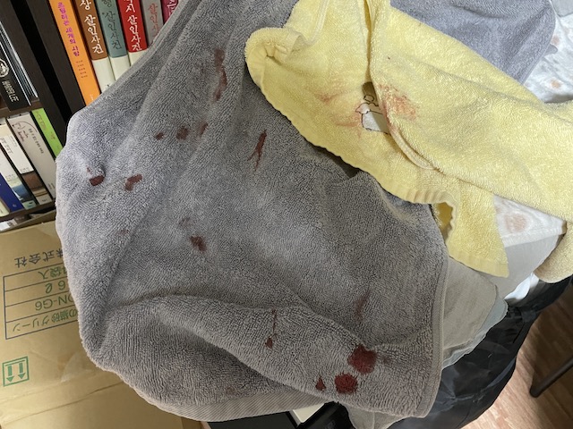 당황해서 지혈할 생각도 못하고 잠시 그래도 피를 흘렸네요. 이런 빙구..