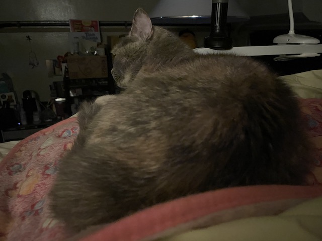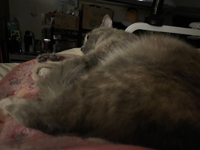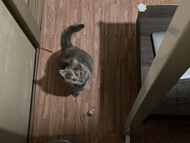 ㅋㅋ 진짜 안 던져줬고, 한참을 혼자 놀던 율무는 다시 침대로 올라와 잤다 합니다.