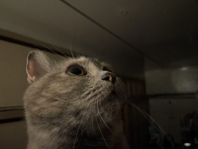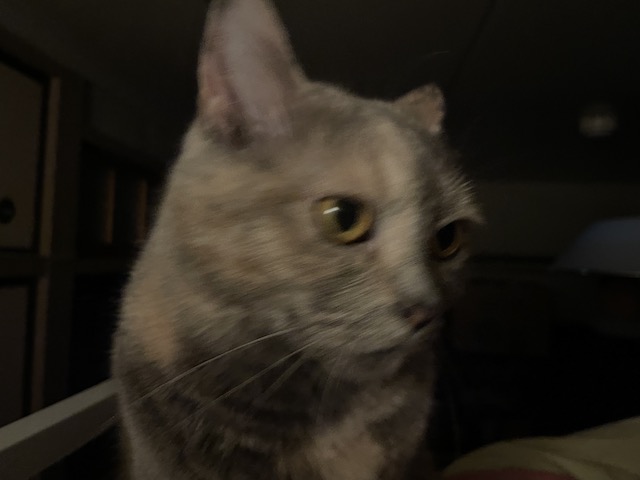집사가 자려고 침대에 올라오면 눈이 똘망해져서 올라오는 율무.