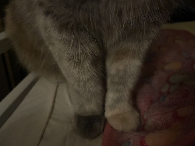 이 귀여운 솜방맹이로 베개 밑으로 들어간 케이블을 파내려 하였습니다.