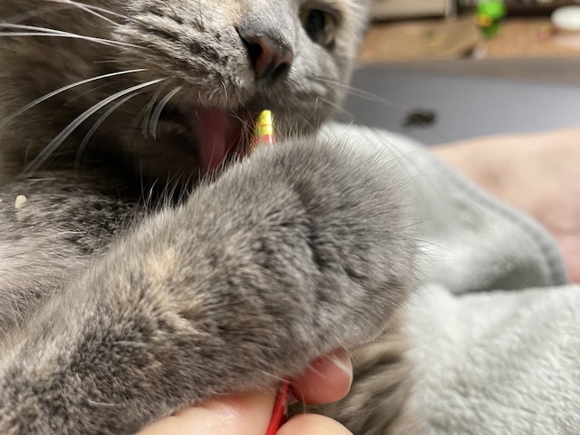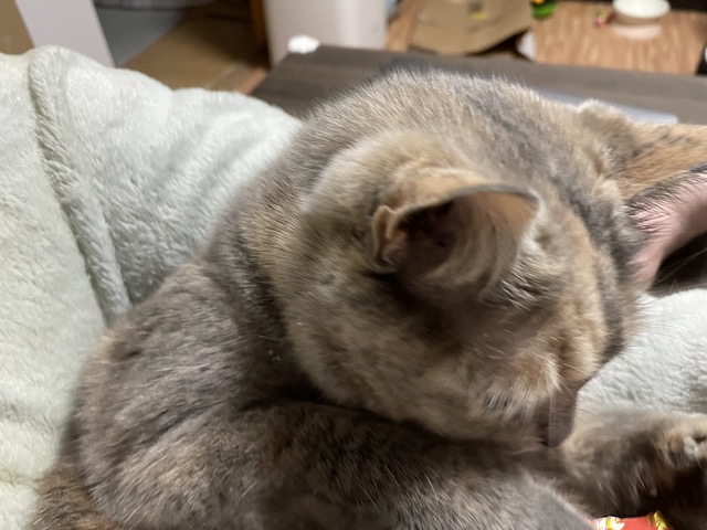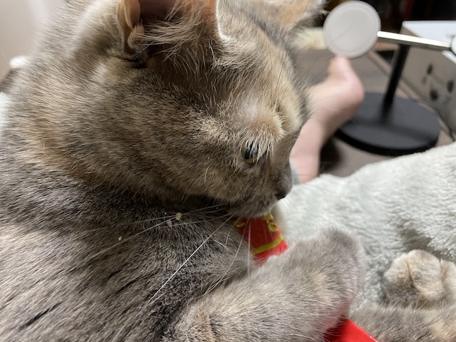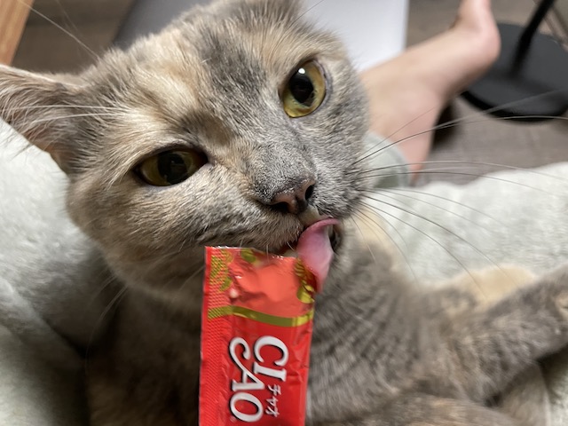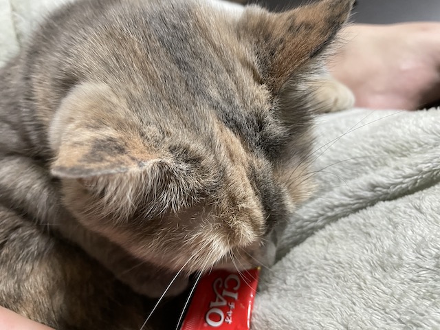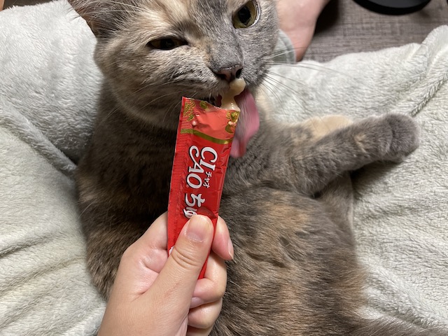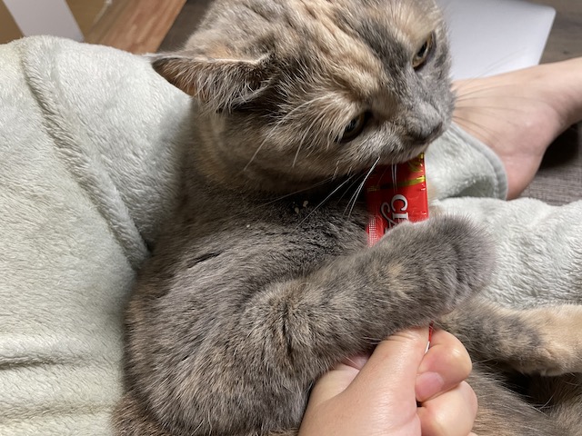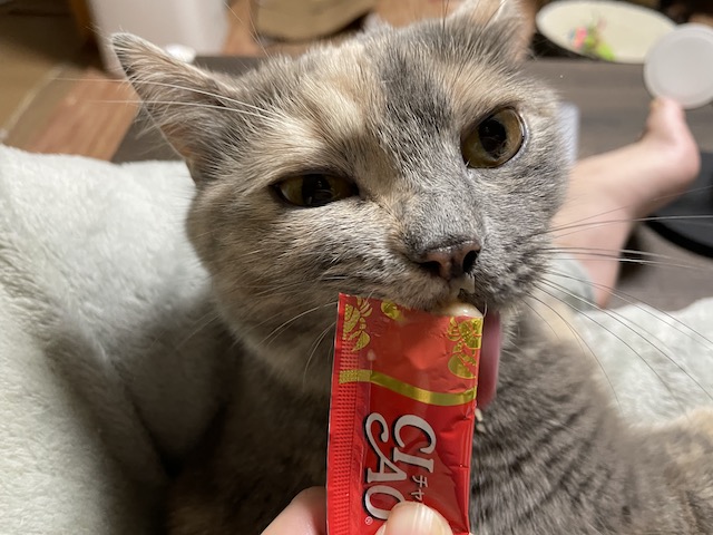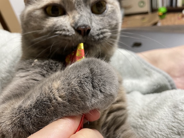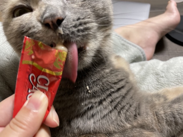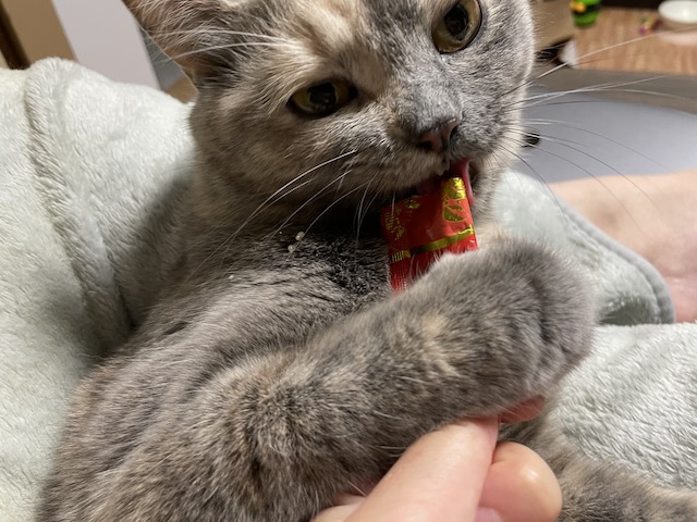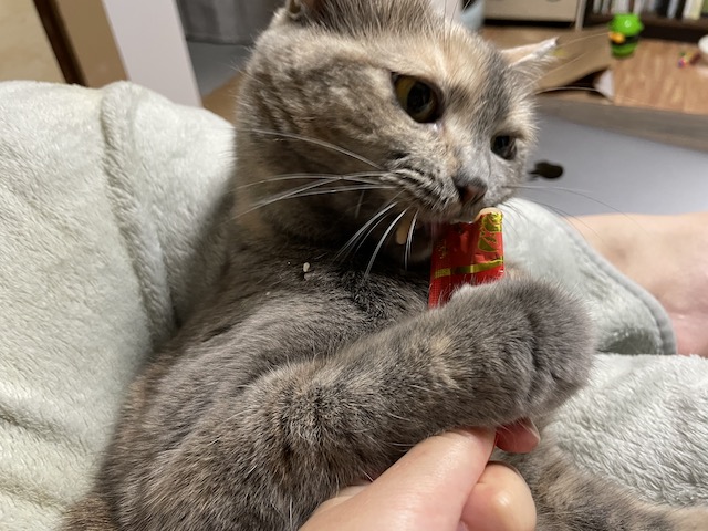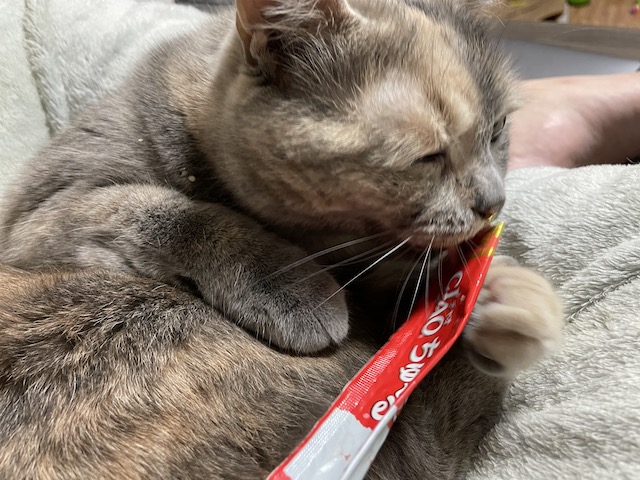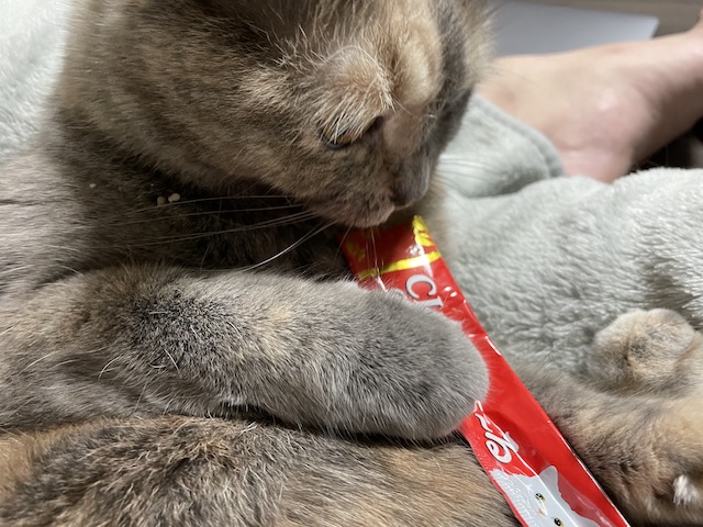 일어나기 전에 츄르를 까 보았습니다.
