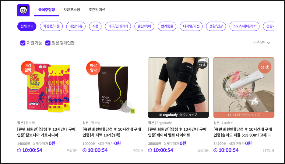 아직은 상품이 많은편은 아니고, Qoo10 상품만 올라와 있습니다.