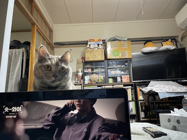그 사이에 슈카 보던 집사는 숏 와이 보는 중