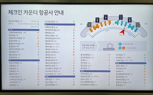 보안 검사를 끝내고 들어와서 게이트 확인 중.