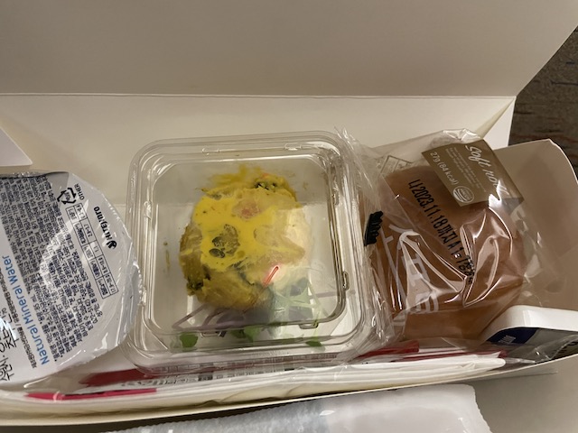 고구마 샐러드랑 빵이랑 물도 있습니다.