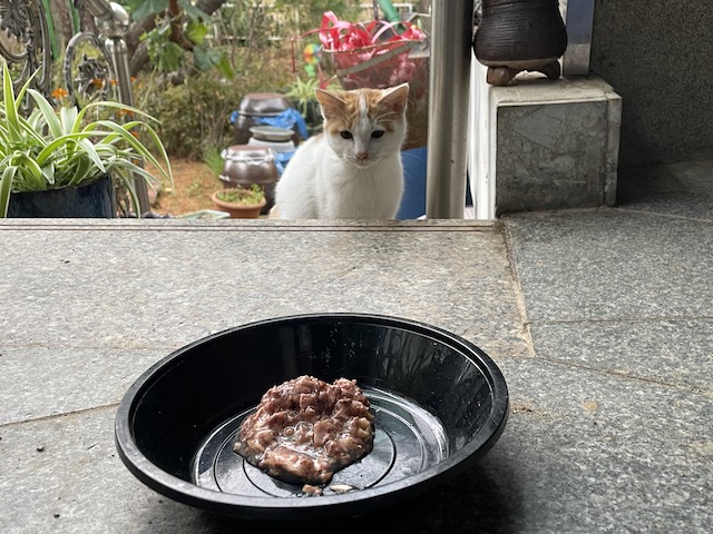 아주 당당하게 아이컨택을 하며 간식을 요구하십니다 .
