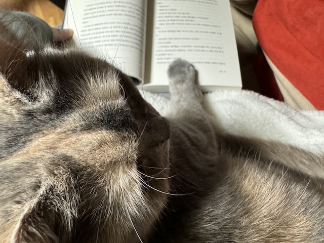 이렇게 율무 덕에 즐거운 독서 시간을 보내고 있습니다.