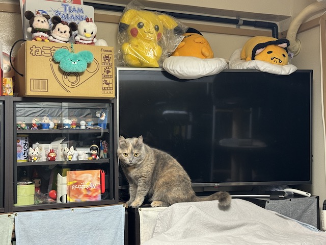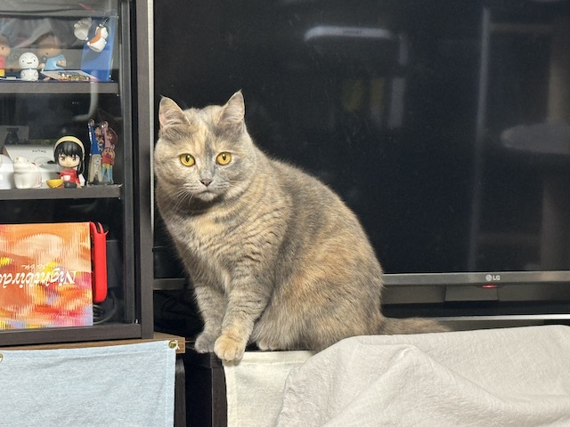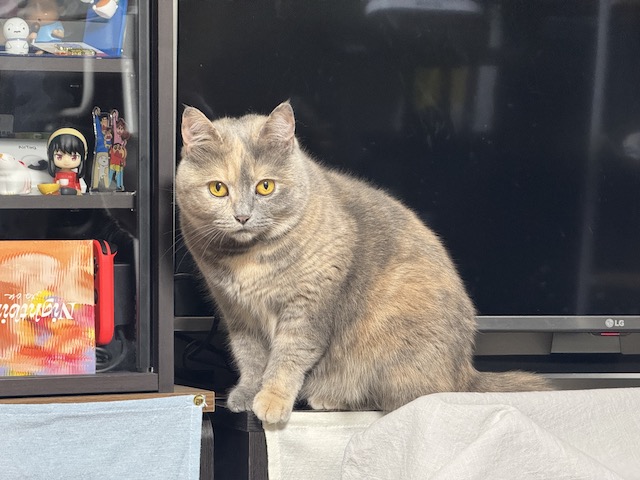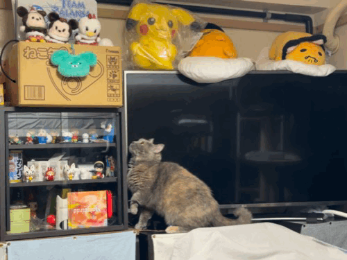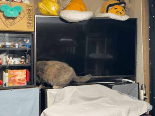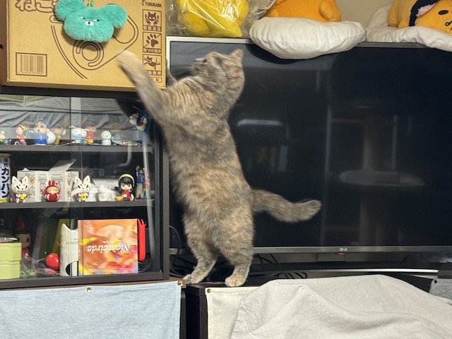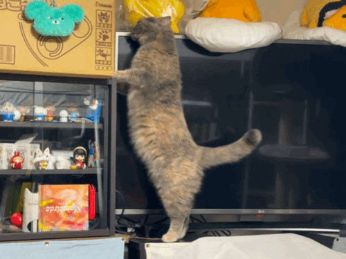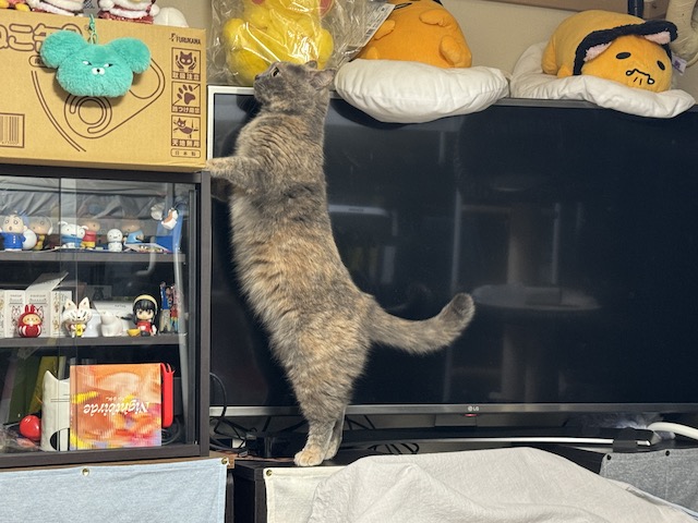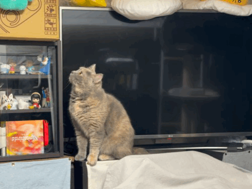 저번에 수납장 위의 박스를 치웠더니 율무가 수납장 위로 올라가서