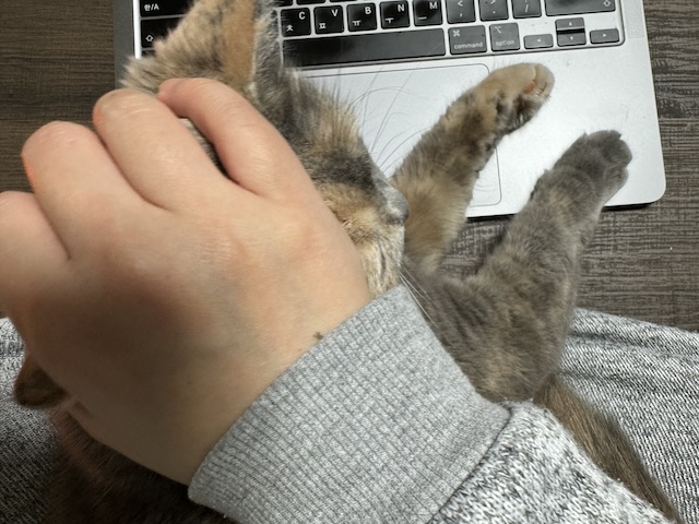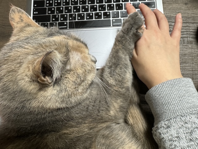 집사가 계속 작업을 했더니 율무가 집사 손을 물어 버렸습니다.