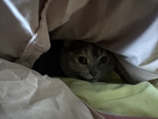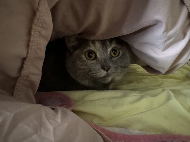 아침에 침대에서 집사가 나와도 한참을 이불 속에 있었다 합니다.