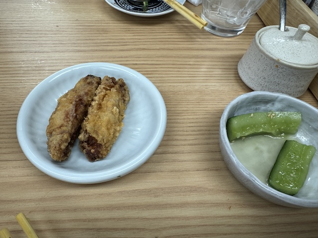 닭날개 튀김이랑 오이 절임