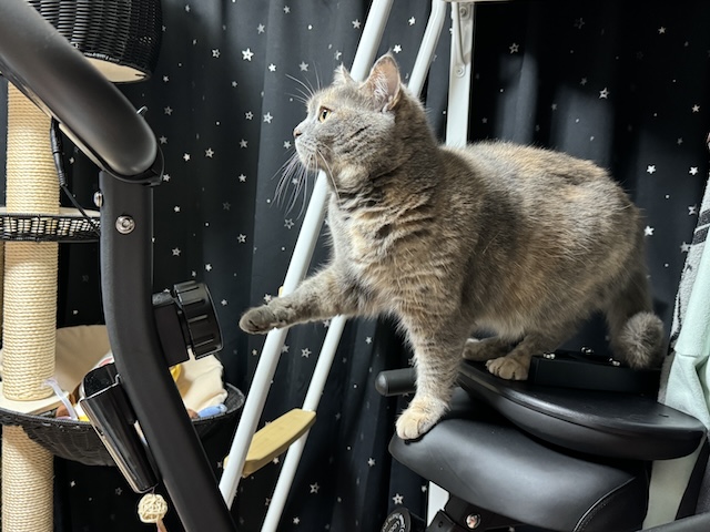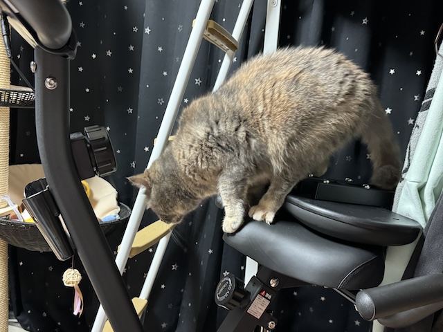 그만해!! 간식내놔!! 하고 승질만 내던 율무가 드디어 자전거 위로 올라가심