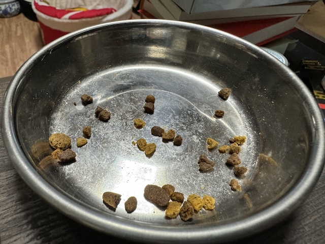 씹고 떨어진 떨어진 사료따윈 안먹겠다는 건가...