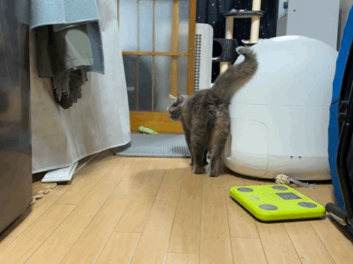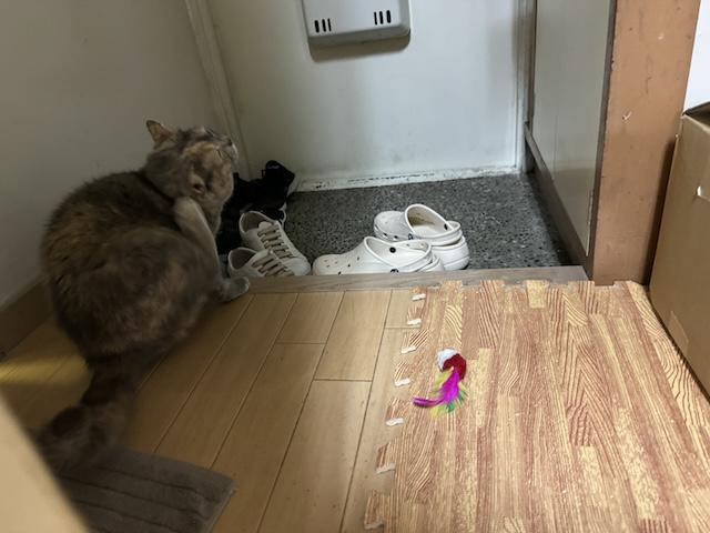 아무리 생각해도 쥐돌이 물고 욕실 앞에 놓은거 너무 귀엽습니다